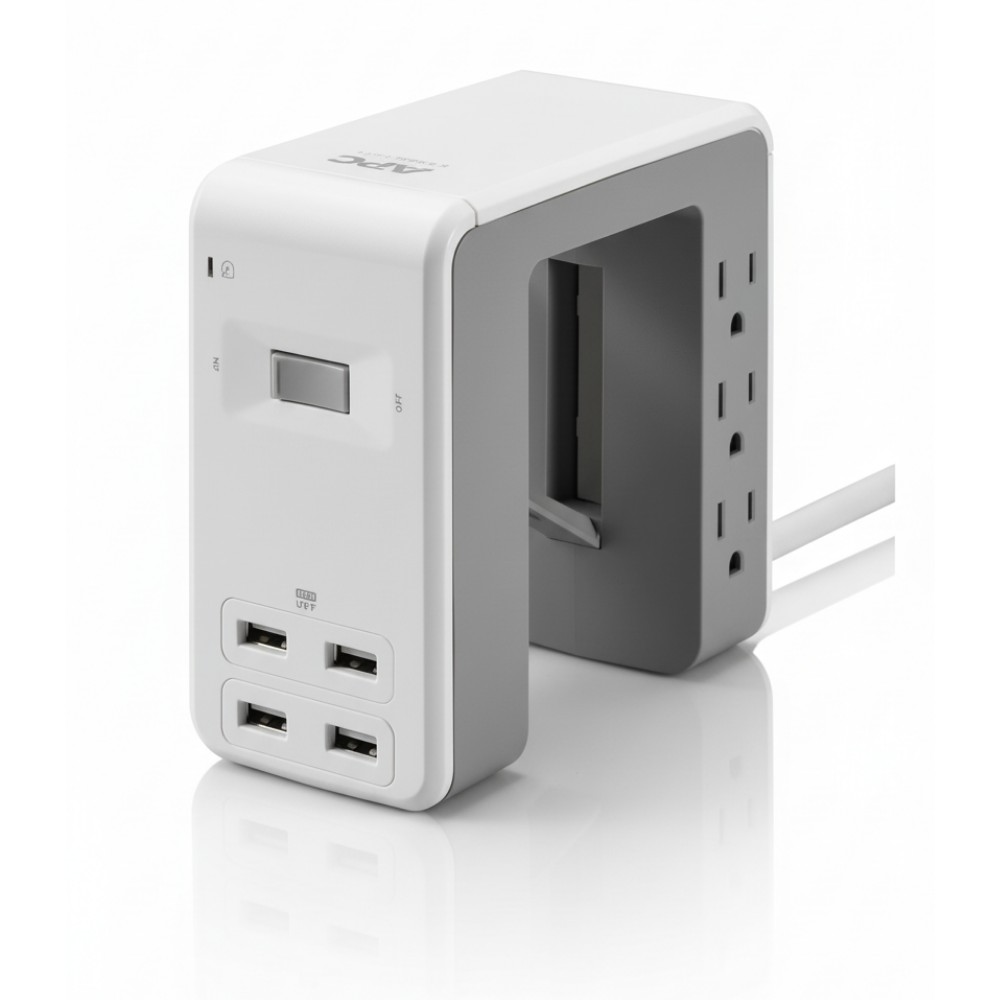 Compact surge protector with 6 outlets and 4 USB ports for efficient charging.