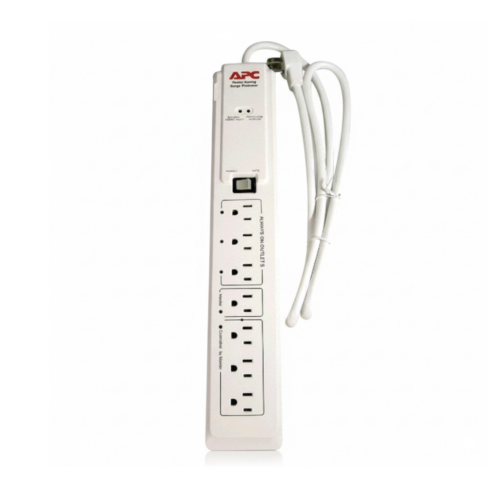 The APC P7GB is a high-performance surge protector designed to safeguard electronic devices from power surges and spikes. With seven outlets, including three always-on outlets and one master-controlled outlet, it offers flexible power management. The unit features a 4-foot power cord, making it ideal for various setups. It also includes LED indicators to notify users of wiring faults and protection status, ensuring peace of mind.