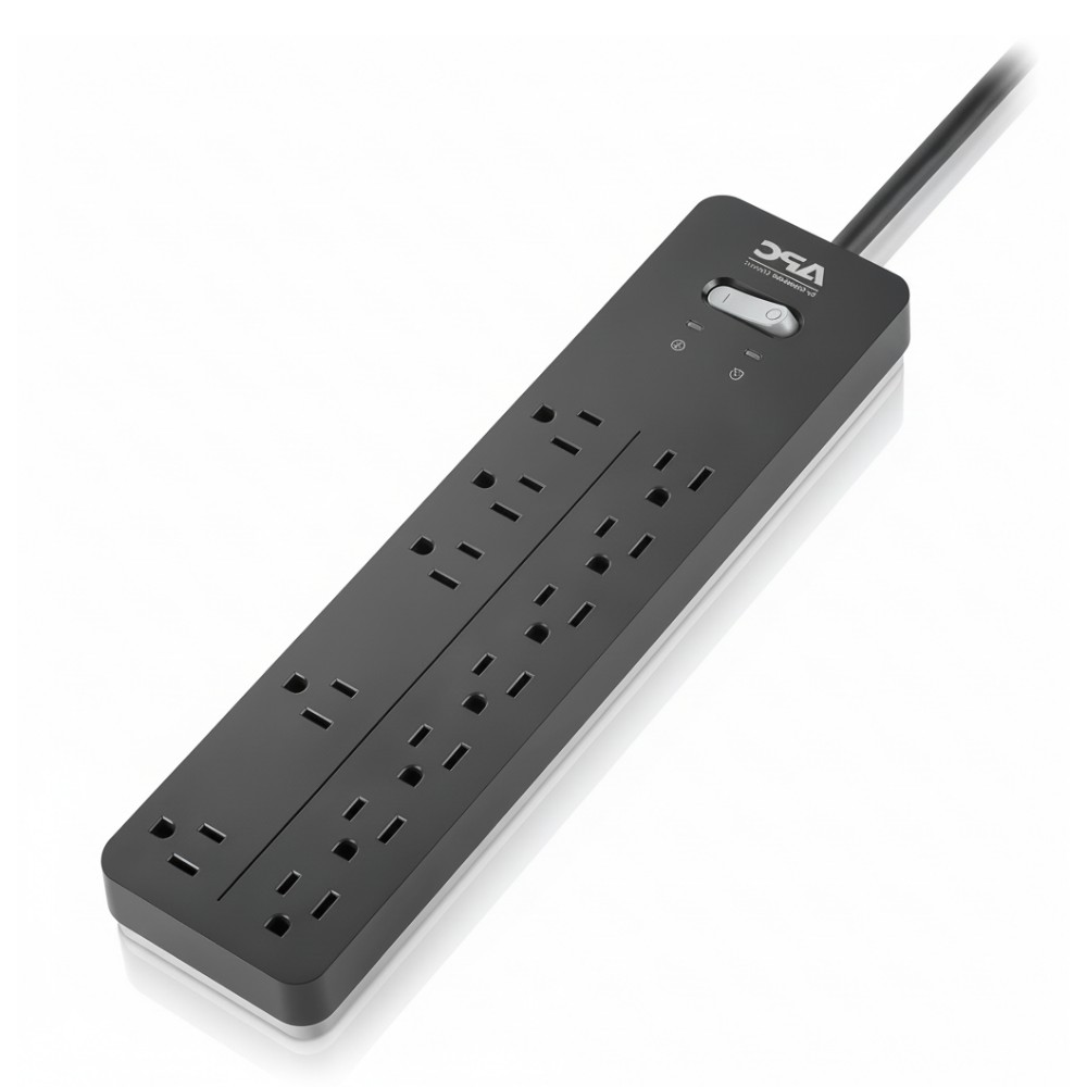 • 12 surge-protected outlets plus 2 USB charging ports (2.4A total output)