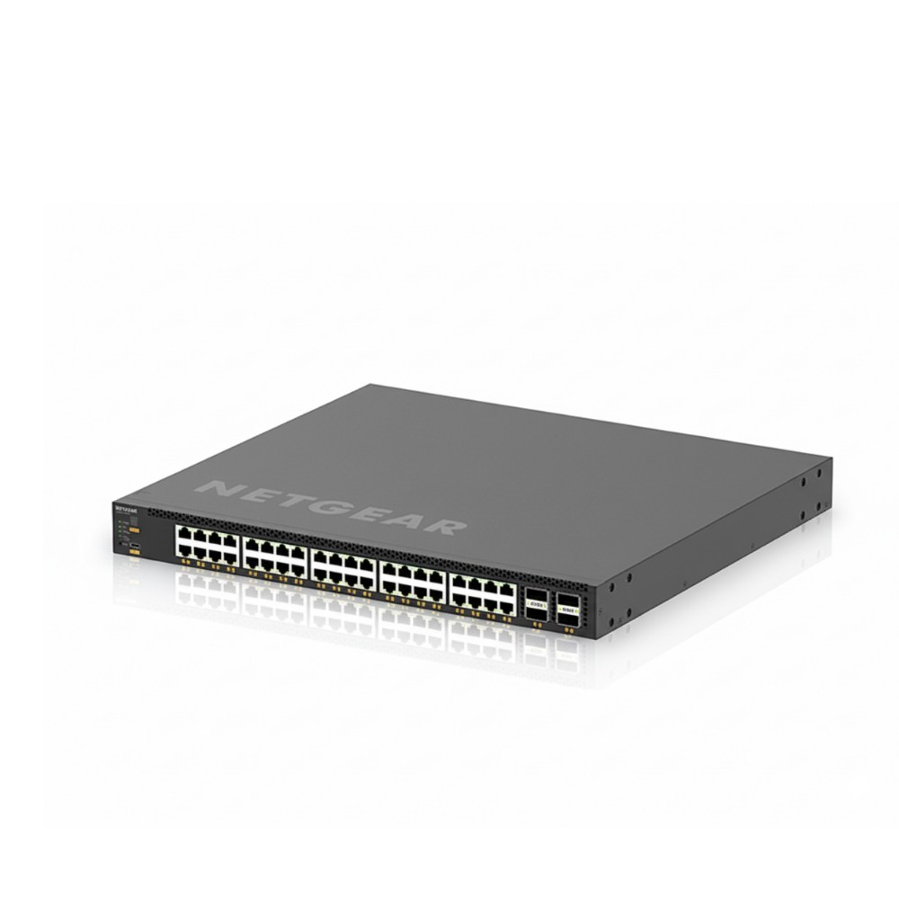 The Netgear XSM4328CV, a cornerstone of the M4350 series (M4350-24X4V), is a high-performance Layer 3 managed switch engineered for the rigorous demands of AV-over-IP and enterprise core/aggregation layers. It features 24 dedicated 10G SFP+ ports for high-density fiber connectivity and 4 SFP28 25G uplink ports to eliminate bandwidth bottlenecks in data-intensive environments. Designed with a specific focus on Pro AV, it includes a dedicated AV web-based interface and pre-configured profiles for major industry protocols such as Dante, NVX, and Q-SYS.