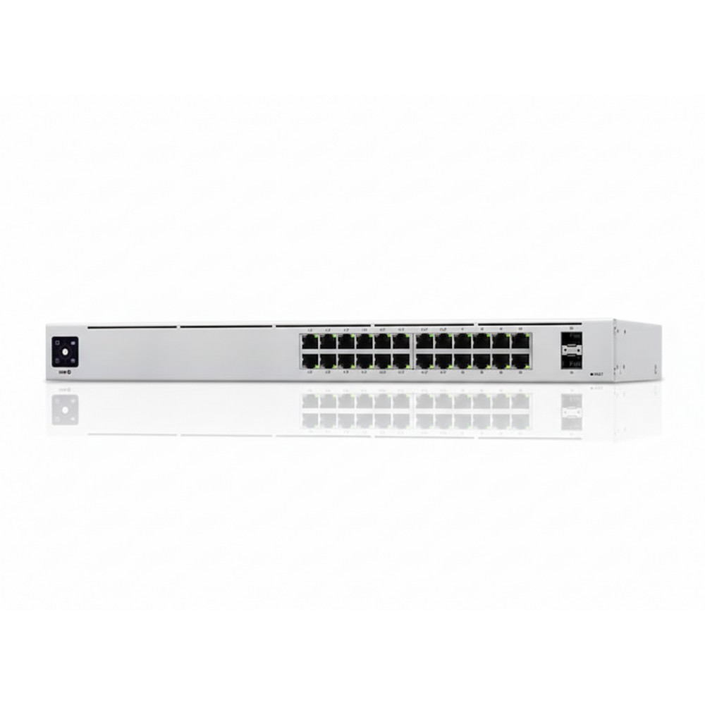 The Ubiquiti Networks USW-24 UniFi Switch 24 is a fully managed Layer 2 switch built to deliver high-performance network connectivity with a sleek, low-noise design. Featuring 24 Gigabit Ethernet ports and 2 SFP uplinks, the USW-24 is ideal for small to medium-sized enterprise networks looking to expand connectivity, optimize traffic, and simplify management through the UniFi Network platform. It combines smart switching features with a compact, rack-mountable form factor, making it a practical choice for professional IT deployments.
