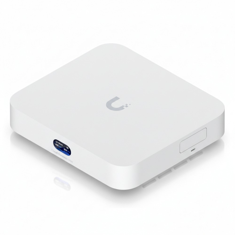 The Ubiquiti UCG‑MAX is a UniFi Cloud Gateway designed to consolidate routing, security, and controller functions in a single desktop unit. It delivers multi‑WAN connectivity, advanced IDS/IPS, and full UniFi OS support with built‑in NVMe storage for local UniFi Protect recordings. The device handles SMB and branch deployments with connectivity for 30+ UniFi devices and 300+ clients. It integrates with the UniFi controller platform for unified management of network, security, and Protect applications.
