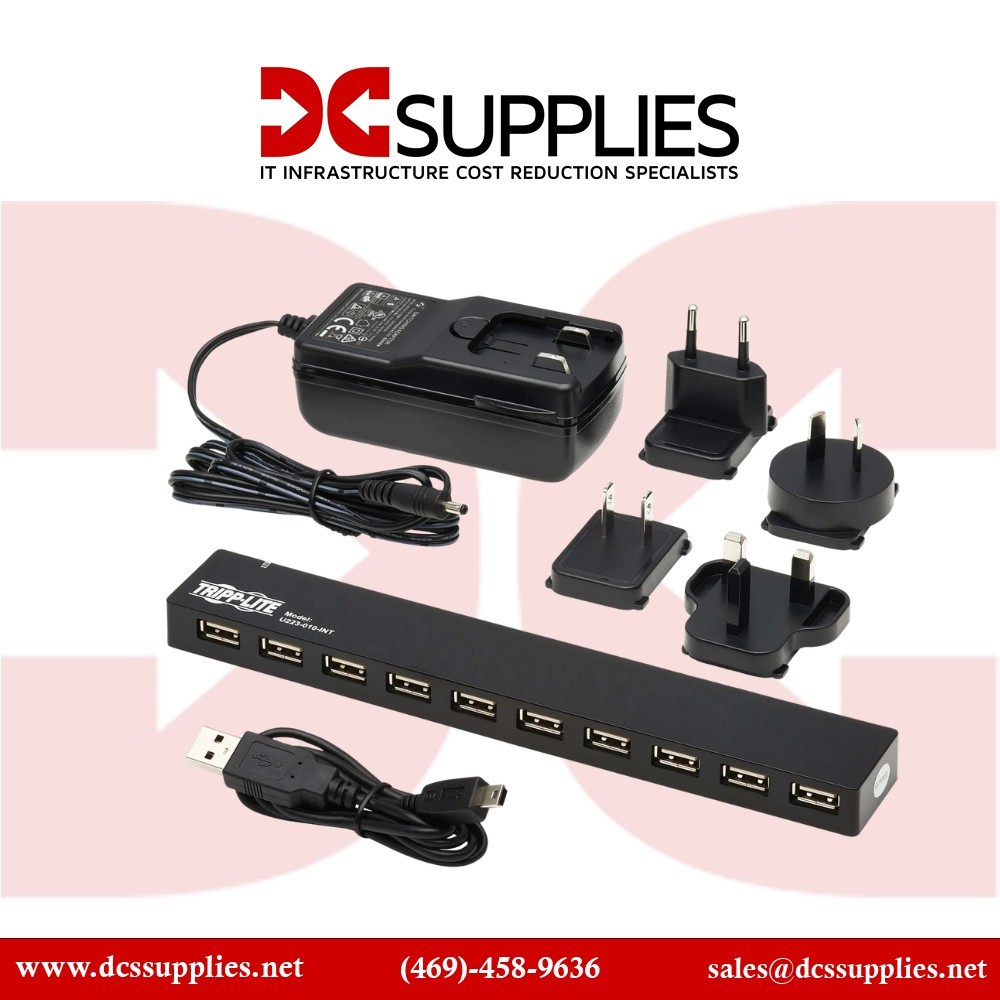 With an impressive **10-Port** configuration, the Tripp Lite hub is perfect for consolidating connections for keyboards, mice, flash drives, printers, and other standard USB devices. It is designed to be **Self-Powered** and includes an external **power cable** (AC adapter) to ensure stable **power distribution** across all ten ports, which is critical when many devices are connected simultaneously. This prevents the loss of **connectivity** and maintains consistent **Hi-Speed** performance for every attached peripheral.