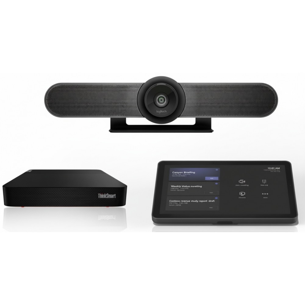 The Logitech TAPMUPMSTLNV2 is a pre-configured, all-in-one video conferencing solution engineered for small meeting rooms and huddle spaces. This comprehensive kit provides all the core components necessary to deploy a professional, touch-controlled Microsoft Teams Rooms environment. It is designed for IT teams seeking a standardized, reliable, and user-friendly collaboration system that simplifies procurement, installation, and long-term management. This system combines the intuitive Logitech Tap touch controller, the compact Logitech MeetUp conference camera, and the powerful Lenovo ThinkSmart Core mini PC. The MeetUp camera’s 4K Ultra HD optics and super-wide 120° field of view ensure everyone in the room is clearly visible, while its integrated beamforming microphones and full-range speaker deliver crisp, clear audio. This integration eliminates the need for separate audio and video devices, streamlining the room's setup. Deployment is straightforward, with components designed for clean and secure installation. The included PC mount allows the Lenovo ThinkSmart Core to be discreetly placed, while the Logitech Tap provides centralized control on the tabletop. The system is managed through the Microsoft Teams Admin Center and Logitech Sync, giving IT administrators full visibility and control over device health and usage, ensuring consistent performance across all deployed rooms.