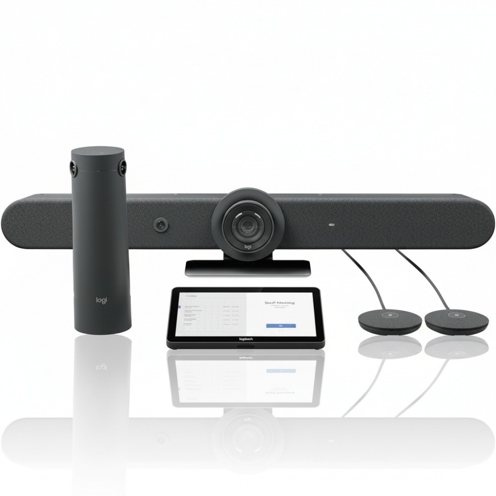 The Logitech 991-000535 Rally Bar + Sight Room Kit is an all-in-one, TAA-compliant video conferencing solution engineered for medium to large meeting rooms. It addresses the need for a comprehensive, professional-grade system that is simple to procure and deploy. This kit bundles a 4K video bar, an AI-powered tabletop camera, a touch controller, and extension microphones to create an equitable and clear communication experience for all participants. This system's core value lies in its intelligent, multi-camera operation. The Rally Bar provides the main room view with its motorized 4K PTZ lens and AI Viewfinder, while the Logitech Sight tabletop camera offers a front-of-room perspective of in-person attendees. This dual-camera setup, managed by Logitech's CollabOS, ensures that remote participants have the best possible view of the active speaker and the overall group conversation, fostering a more natural and inclusive meeting environment. Designed for streamlined installation and management, the entire solution connects through a simplified cabling system and is managed via the Logitech Sync platform. The included Tap Cat5e controller delivers a consistent, one-touch join experience for leading unified communications platforms like Microsoft Teams, Zoom, and Google Meet. Its components and TAA compliance make it an ideal choice for enterprise, government, and other high-stakes environments requiring secure, reliable, and scalable collaboration hardware.
