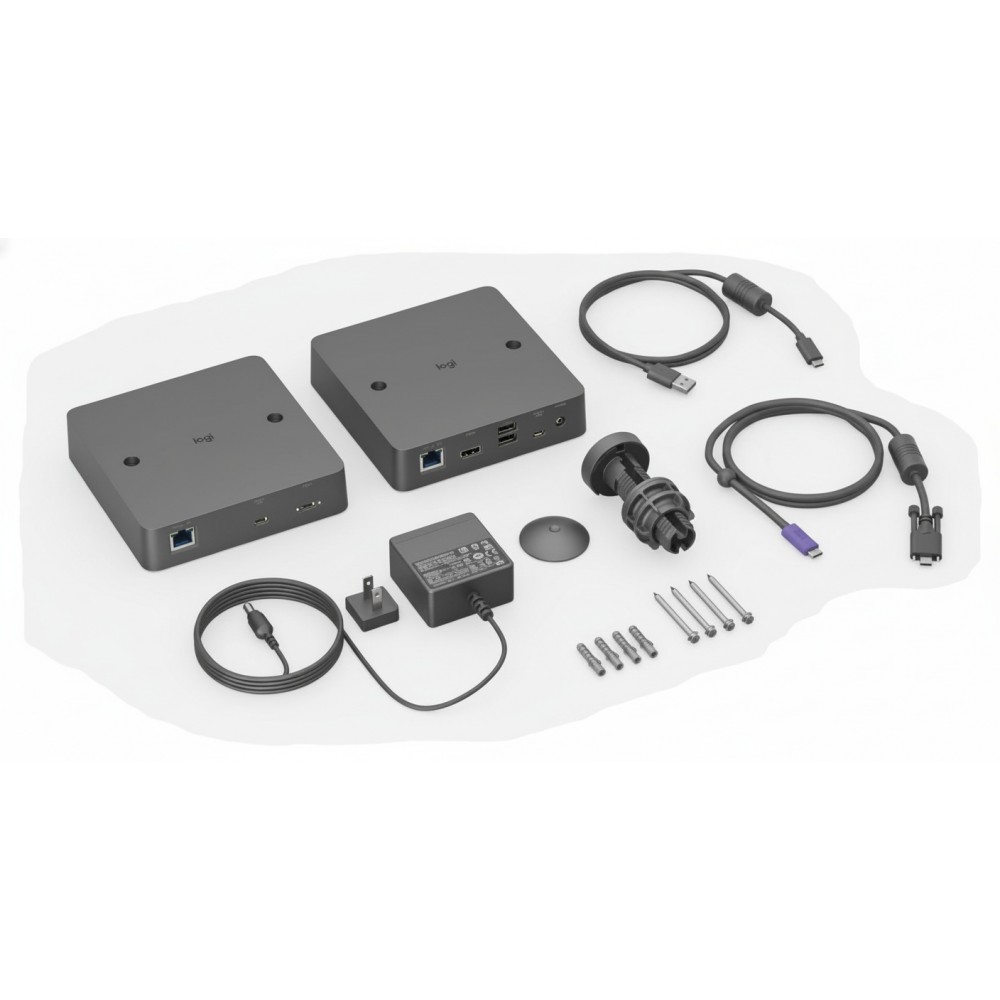 The Logitech Extend, part number 952-000188, is a robust video extender system engineered to solve a critical challenge in modern meeting rooms: seamless bring-your-own-device (BYOD) connectivity. This transmitter and receiver set is designed for IT environments that need to provide a simple, reliable way for any user to connect their laptop to the room's primary display and conferencing hardware using a single USB-C cable, eliminating driver issues and user confusion. This system utilizes a paired transmitter (TX) and receiver (RX) architecture to extend high-definition video and USB signals over long distances. By leveraging standard Category 6a network cabling, it can transmit a 4K UHD (3840 x 2160) signal up to 100 meters. This technical capability provides immense flexibility in room design and cable management, allowing the user's connection point to be placed conveniently on a conference table while the room's core hardware remains neatly installed by the display. Deployment is straightforward within any professional AV infrastructure. The compact receiver (RX) unit connects directly to the room's display via HDMI and to peripherals like a Logitech Rally Bar through its USB-A ports. The corresponding table-side (TX) unit provides the user-facing USB-C connection. The entire system can be monitored and managed remotely through Logitech Sync, giving IT teams centralized control over device status and firmware updates.
