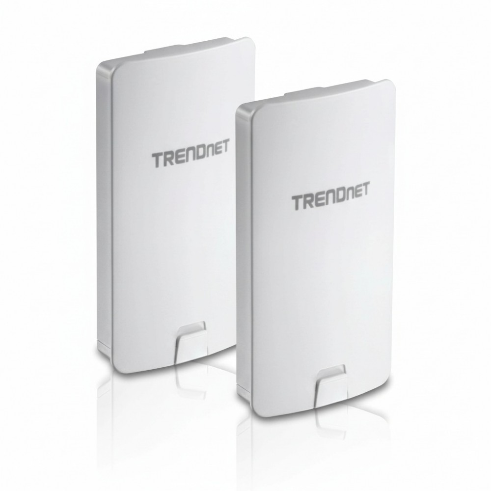 The TRENDnet TEW-840APBO2K is an outdoor preconfigured point-to-point bridge kit designed to simplify the creation of long-range wireless links. Engineered for installers and network administrators, this kit provides a reliable solution for connecting two separate locations, such as office buildings, warehouses, or remote sites, without the need for physical cabling. It addresses the challenge of extending network connectivity over distances where trenching for fiber or copper is impractical or cost-prohibitive, delivering stable, high-speed wireless performance. At its core, the kit leverages the 802.11ac WiFi standard to achieve data rates up to 867 Mbps on the 5GHz frequency band. This high-throughput capability is supported by integrated 14 dBi directional antennas, which focus the wireless signal for enhanced range and clarity. The preconfigured and pre-encrypted nature of the two included access points significantly reduces installation time and complexity, allowing for rapid deployment with minimal technical overhead. This turnkey approach ensures a secure and optimized connection right out of the box. Designed for durability in harsh environments, each unit in the TEW-840APBO2K kit features a robust IP56 weather-rated housing. The included pole and wall mounting hardware provides flexible installation options. Power is supplied via proprietary Power over Ethernet (PoE) injectors, which deliver both power and data over a single Ethernet cable, simplifying the wiring process. This combination of performance, ease of deployment, and rugged construction makes it an ideal solution for extending enterprise networks outdoors.