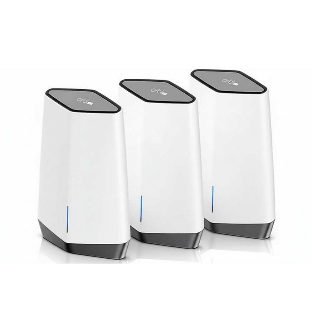 The Netgear SXS80-100NAS is a tri-band WiFi 6 (AX6000) add-on satellite for the Orbi Pro mesh system. It expands coverage by relaying traffic from the router over a dedicated backhaul band. Its design is meant to serve branch or office areas where extending WiFi coverage is required. It pairs only with compatible Orbi Pro routers and integrates into Insight or local management.