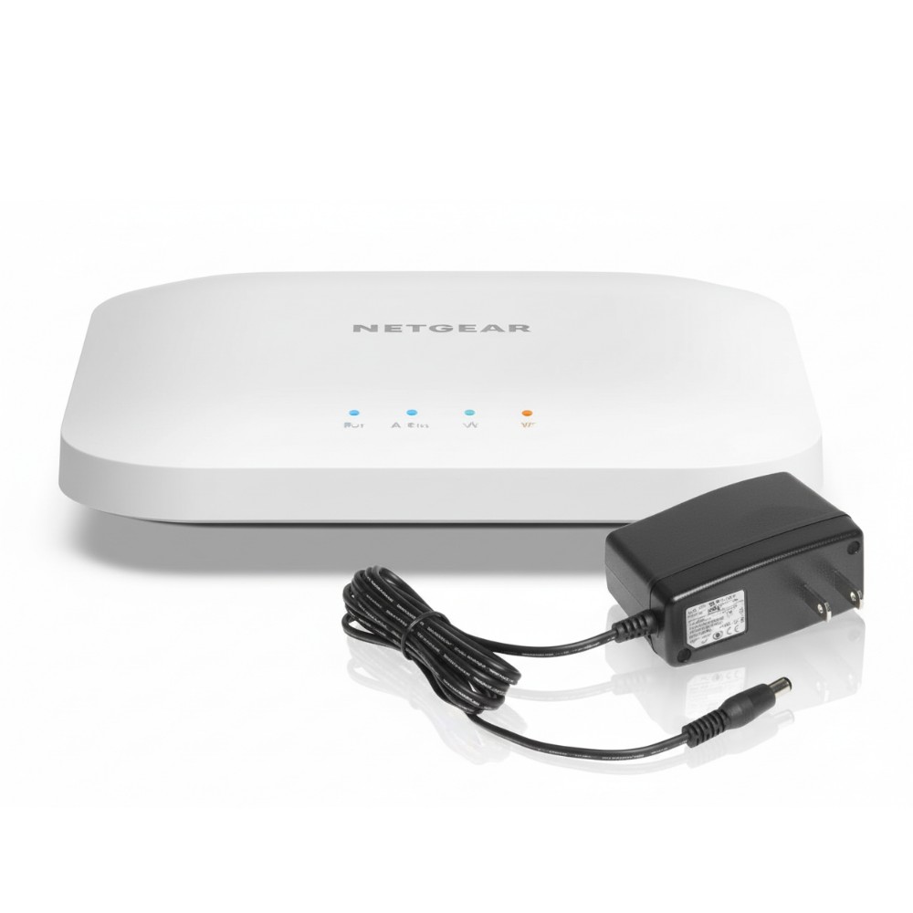 The Netgear WAX214PA-100NAS is a WiFi 6 (802.11ax) access point designed for small businesses, retail stores, and branch offices. It provides up to 1.8 Gbps total wireless throughput with dual-band 2.4 GHz and 5 GHz radios. The unit is ideal for ceiling or wall mounting to ensure strong, even coverage. It supports both PoE and DC power for flexible installation options.