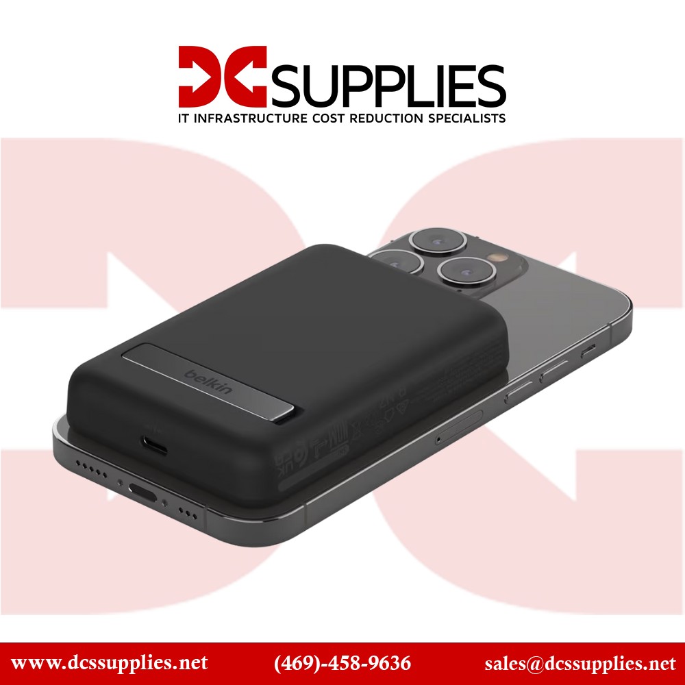 The Belkin BPD004BTBK Boost Charge Magnetic Wireless Power Bank 5K Stand is an innovative and highly convenient portable charging solution. This magnetic wireless mobile power bank is designed to snap securely to your device, providing a hands-free charging experience. With a 5,000 mAh capacity and a built-in stand, this wireless mobile power bank is the perfect companion for travel, work, or daily use, allowing you to charge and view your content simultaneously.